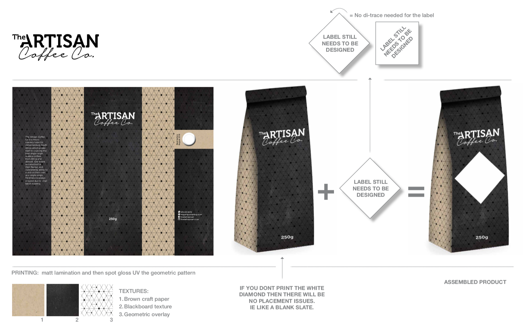 Packaging for a coffee brand called The Artisan Coffee Co.