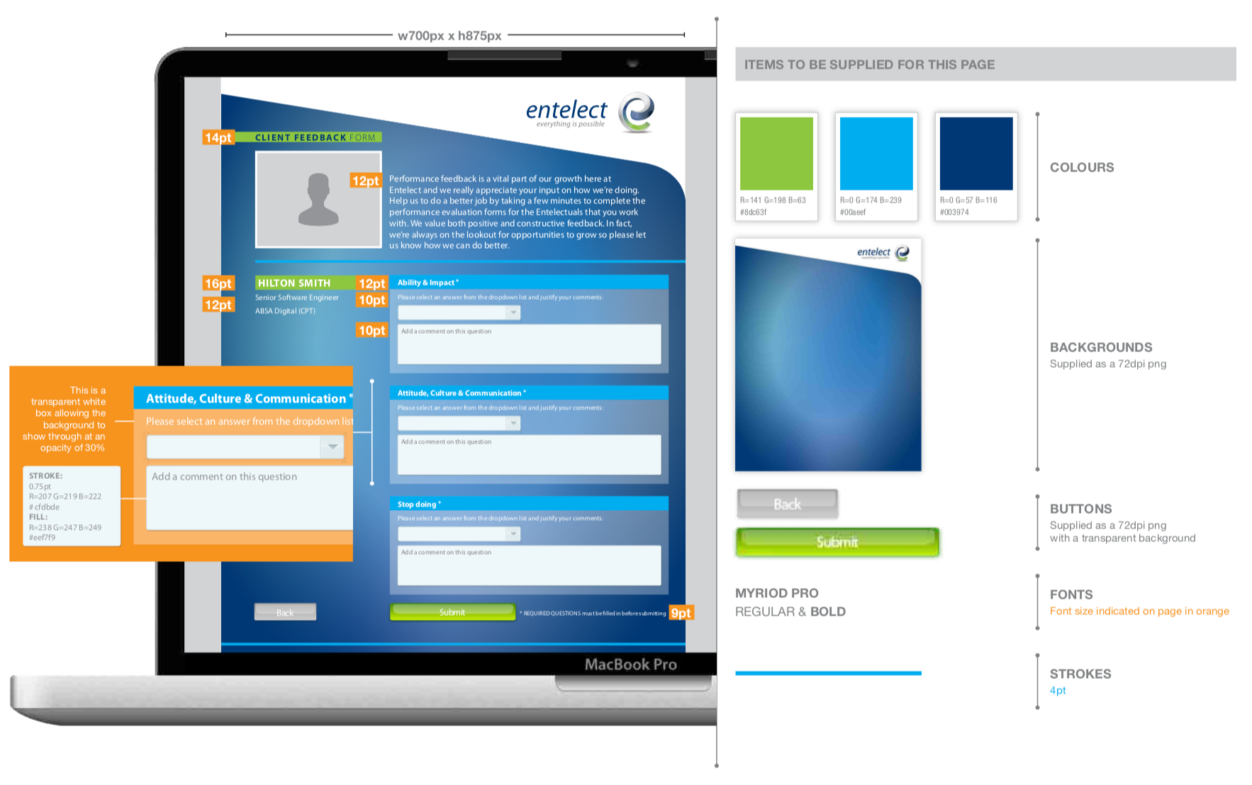 UX Design for a client feedback page
